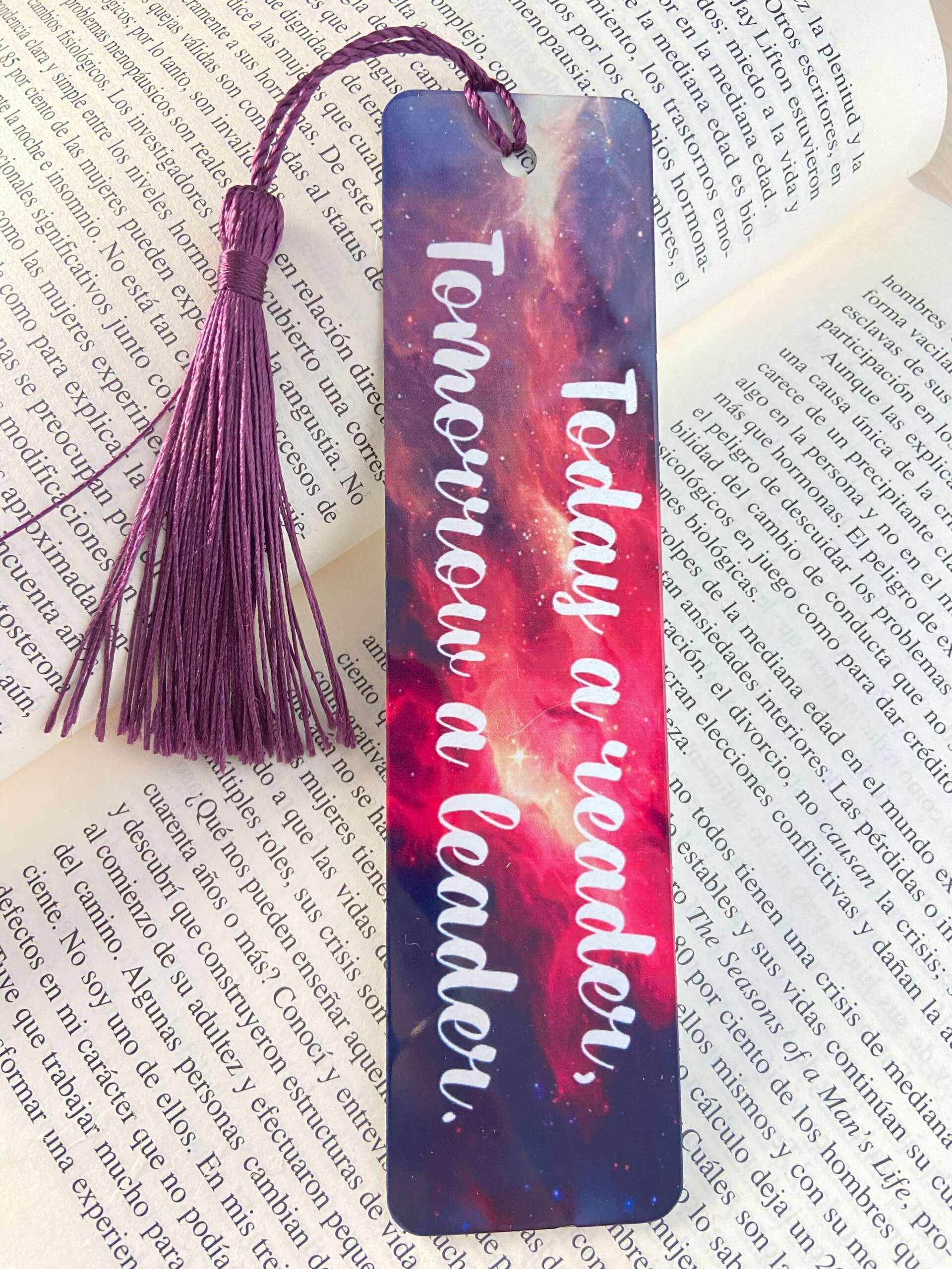 Marcapágina de aluminio sublimado. Medidas: 15,4 cm alto x 4 cm ancho.