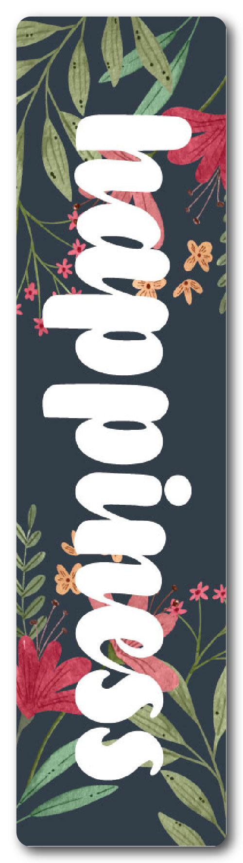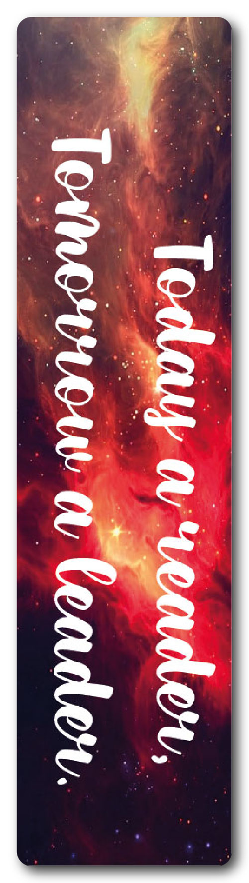 Marcapágina de aluminio sublimado. Medidas: 15,4 cm alto x 4 cm ancho.
