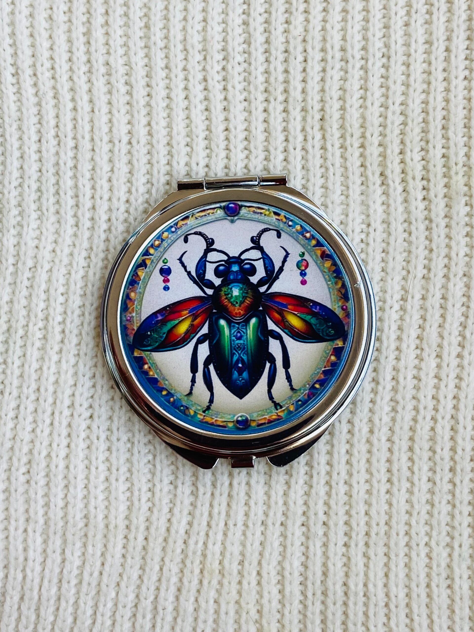 Espejos únicos hechos a mano con diseños inspirados en la naturaleza, lo cósmico y lo espiritual. Compactos, ligeros y llenos de arte.